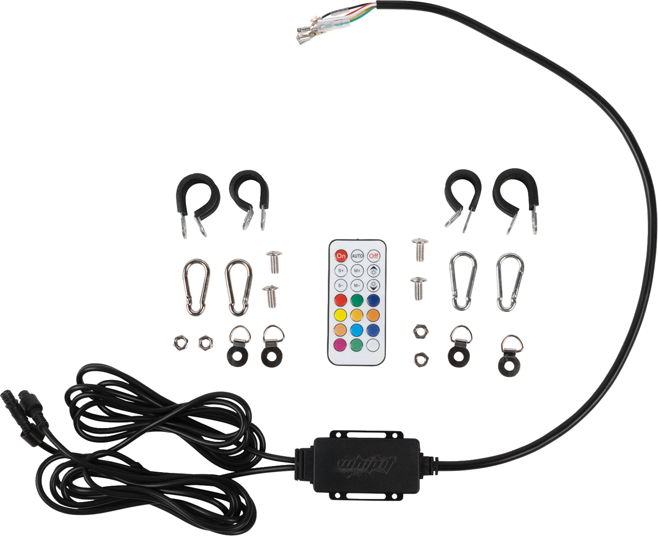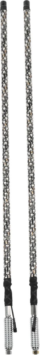 1/2” virtually unbreakable fiberglass rod, stainless steel barrel spring. 360° spiral wrap with 2-3 times the brightness of single-row whips. Brake and turn signal functionality. 20 solid colors, 22 effects (flash, strobe, fade-through-colors). Bluetooth® + remote. Music sync, color/pattern/effect customization, brightness/speed control, group LED control. UV-resistant coating to prevent discoloration. Interchangeable Moose Racing Flag (removable). Easy install, rock-solid performance. IP67 dust and waterproof. Wiring harness, remote, spring mount, Moose Racing Flag, flag hardware, installation instructions included. Quick release flag mount sold separately..
