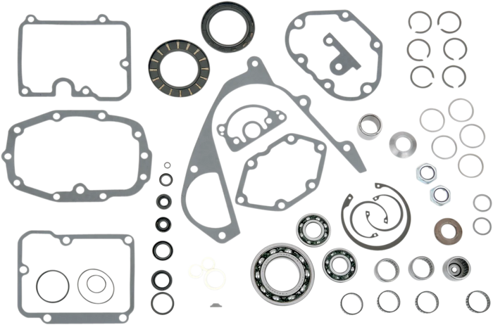 Includes all the necessary gaskets, seals, locks and bearings needed to completely rebuild a 5-, or 6-speed transmission. Made in the U.S.A..