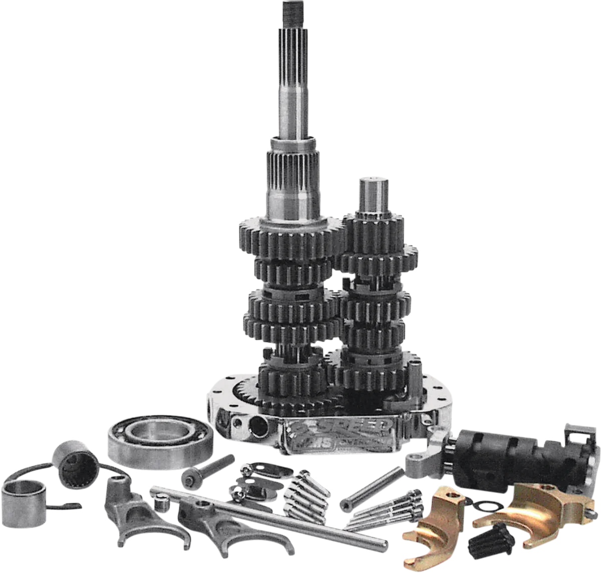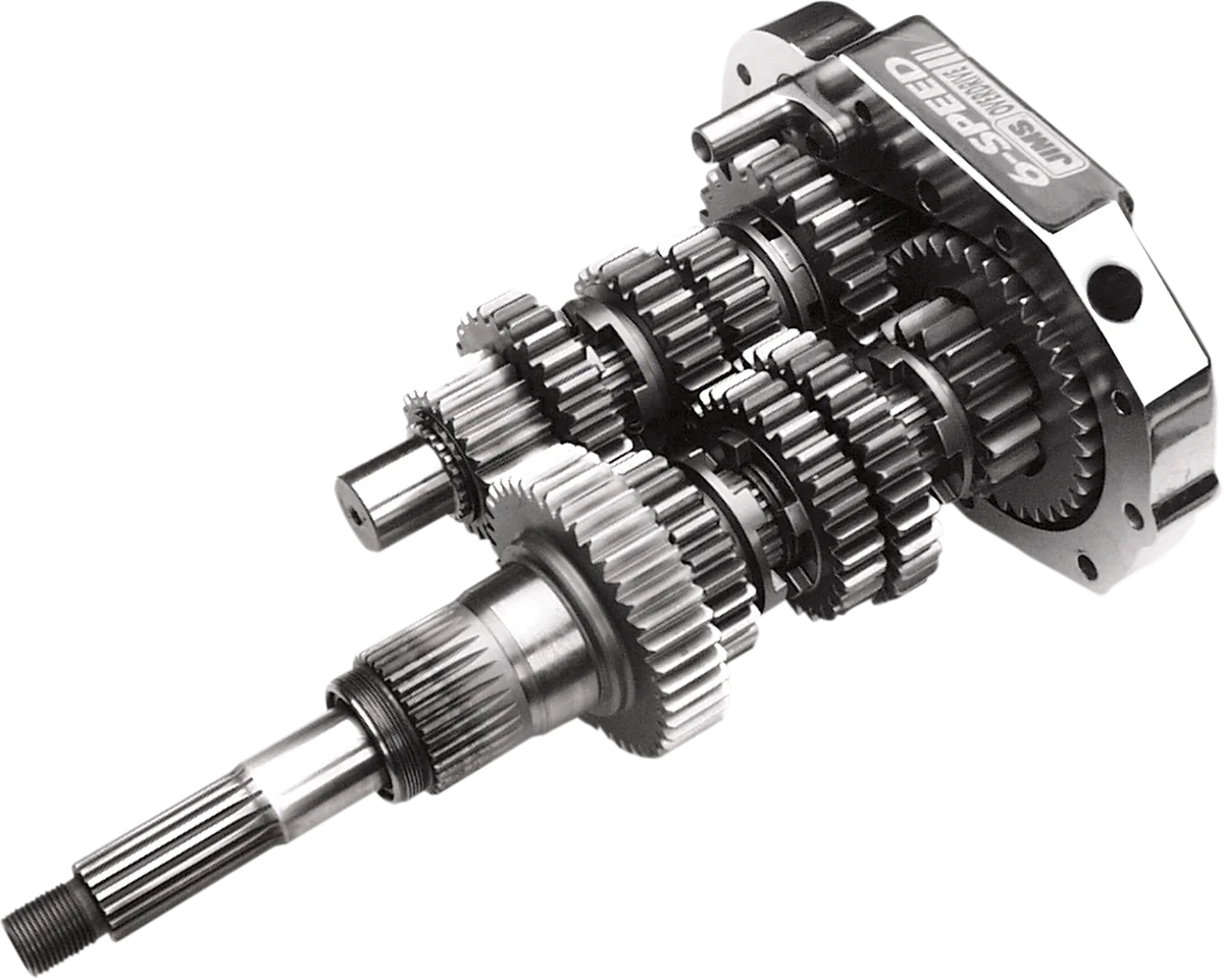 Designed to turn stock 5-speed transmission into a 6-speed. Reduces vibration that creates wear. Creates a more relaxing cruising speed. All gear sets use 2.94:1 close-ratio 1st gear that widens bike's speed range in 1st gear and lessens the rpm drop when shifting into second. Overdrive 6th gear (.86:1 ratio) lowers engine rpm by almost 475 at 75 mph. Gaskets and seals included. Made in the U.S.A.. Requires speedometer sensor block-off plate kit; if speedometer is not driven from transmission, then two block-off plates kits are required.. Trap door extends 3/8" farther to right than stock part. Alteration to some parts that attach to or around the trap door may be required.. Requires speedometer be recalibrated..