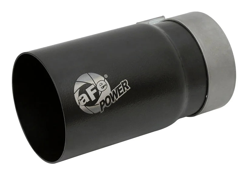 aFe Power is proud to introduce the all new exhaust tips. This tip comes with a powder-coated black finish and is designed to fit 3-1/2" exhaust systems. With a 3-1/2" inlet x 4" outlet and 7" inch length, this single-walled, straight cut tip comes with unique laser-etched aFe Power logo for an aggressive style.