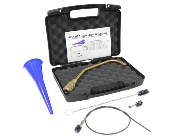 | 2004 | BMW | X5 | 4.4i | Cleans the secondary air injection tubes and air passages without removing the cylinder heads or engine from the car.; Contains: (Qty.) (1) Guide Tube with Handle, (1) Flex Cable, (2) Flex Cable Brushes, (1) Hand Brush, (1) Funnel, (1) Black Carrying Case.; For cleaner hook tool, see part # 09 9983 010. |