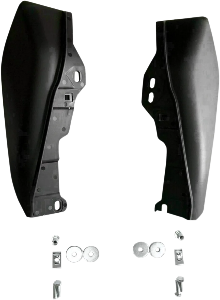 Directs heat away from rider to improve comfort on hot summer rides. Mounts to frame just under the front of the seat. Tough black plastic construction. Easy to install. Includes mounting hardware.