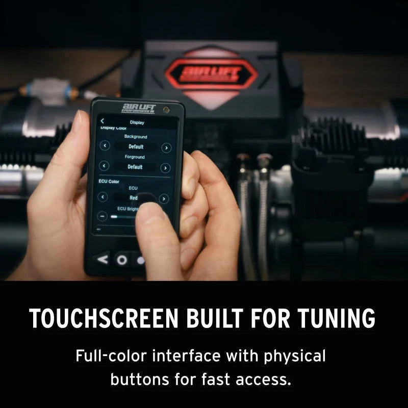 The ALP4 pressure-based air management system redefines what’s possible for air suspension control, combining cutting-edge hardware with smarter, more seamless functionality. This system features a compact, all-in-one manifold, which houses the ECU, solenoids, and pressure sensors, crafted from anodized black billet aluminum for durability and a sleek, show-ready appearance. The manifold’s customizable LED-lit top cover lets builders match their system’s color to their vehicle. ALP4 offers multiple preset ride pressures and full manual control, allowing for instant air-outs and show-ready configurations. Paired with a full-color touchscreen controller framed in anodized aluminum and equipped with four tactile physical buttons, this system offers immediate control for your presets, 4-corner manual control, axle adjustments, or full air-out. With mobile app integration, ALP4 allows you to use and fine-tune your setup from anywhere, ensuring ultimate control. ALP4 can be run as a height-based air management by simply incorporating our Height Upgrade Kit. Designed for plug-and-play installation, the ALP4 harness reduces wiring complexity, requiring only power, ground, and keyed ignition, thereby eliminating the guesswork common in air suspension installations. Plus, built-in diagnostics with user-friendly messaging ensure real-time system feedback, giving drivers the confidence to hit the road or the show floor without surprises.