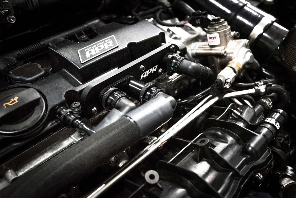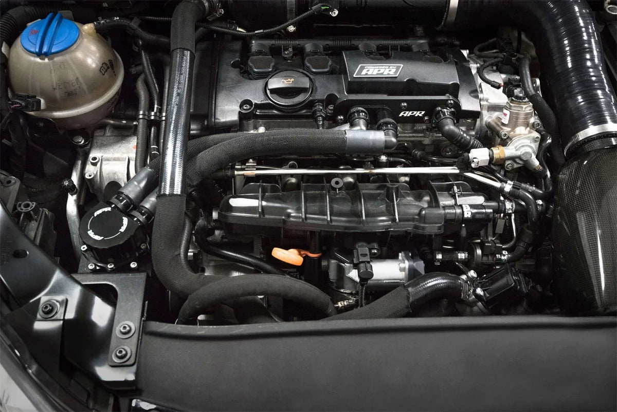 | Description_MKT | The APR Oil Catch Can System replaces the failure prone factory positive crank ventilation (PCV) system and traps excessive crankcase oil vapors and gunk from entering the engine. The system eliminates a common performance robbing boost leak, while reducing carbon buildup on intake valves, octane lowering oil vapors and oil pooling within the intake tract. It's a simple modification to install, drains in seconds with the flick of a knob, and is recommended at all stages of performance. |