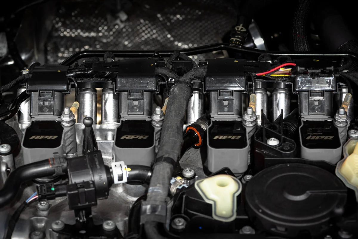 Description_MKT | APR Ignition Coils are designed to be a direct plug-and-play upgrade to factory coils, and provide greater energy output, ensuring a stronger and more consistent spark. The commonplace replacement of factory ignition coils with those taken from higher output Audi RS models, such as the 2.5T, is popularly believed to provide greater energy output. However, testing proves that they are no more powerful than the factory coils that are found on 1.8T and 2.0T engines. APR Ignition Coils increase energy output by 14%. They are a direct upgrade or replacement, and come with a unique grey housing! |