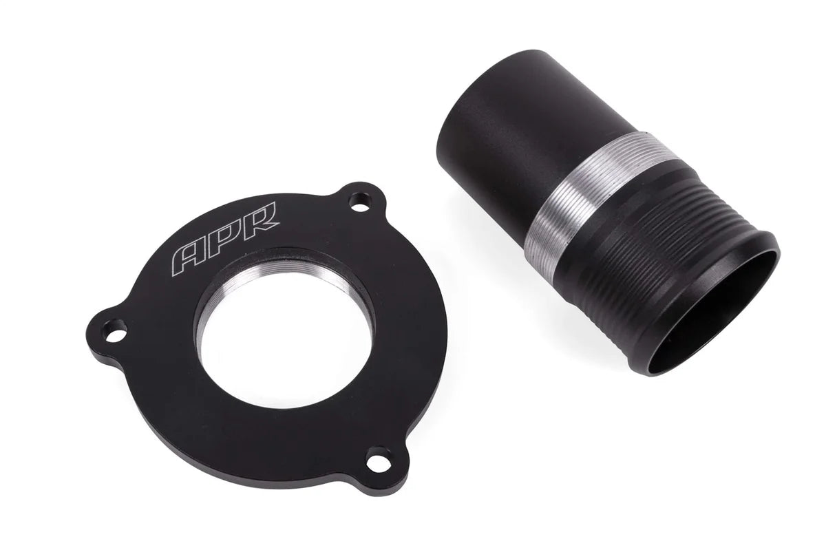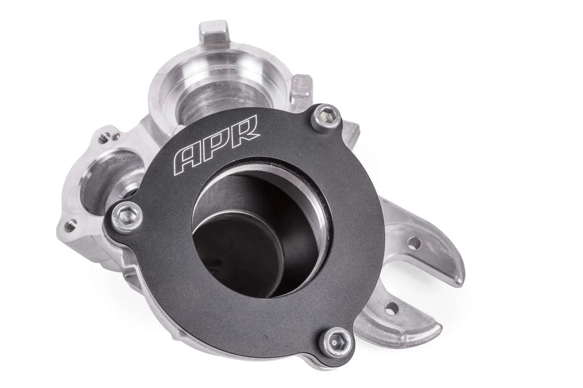| Description_MKT | APR's 2-piece design solves this issue with an adjustable height design. While a 2-piece design is more difficult and expensive to manufacture, it's the only way to ensure an accurate fit and perfect seal. APR provides a Viton seal that's placed at the bottom of the muffler housing. The muffler cover is then installed forming a seal with the factory gasket. Then, the center tube is inserted and screwed into place to the desired depth, compressing against the Viton seal to ensure a leak proof seal in every scenario. Finally Tension from the seal prevents the tube from coming loose, and the included Loctite provides extra security from movement. With the turbo muffler deleted, the APR design provides a smooth, turbulence free, and leak proof path for airflow existing the turbo! |