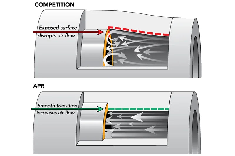 | Description_MKT | APR's Engineers took a multi-step approach to optimizing the hoses to minimize boost leaks, reduce turbulence and other performance degradations. Four-ply silicone was utilized as it provides the thickness and strength characteristics necessary to support boost levels far beyond the engine's capabilities. A Fluorosilicone internal lining was added to ensure the hoses do not rapidly deteriorate over time when exposed to oil and gasoline from the PCV and EVAP systems. The kit uses stainless-steel Clampco T-bolt clamps from your turbo kit and outlet pipe kit to prevent the hoses from coming loose under heavy pressure and under high temperatures, silicone adheres to its mating surface, further minimizing leaks and hose slippage. APR's EZ-Flow stepped design creates a smooth airflow path, reducing turbulence over non-stepped designs. Finally, silicone provides better heat resistance over rubber, extending the life of the product and ultimately minimizing failure. The result is hose solution that directly replaces the factory rubber hoses and maintains performance under extreme conditions! |