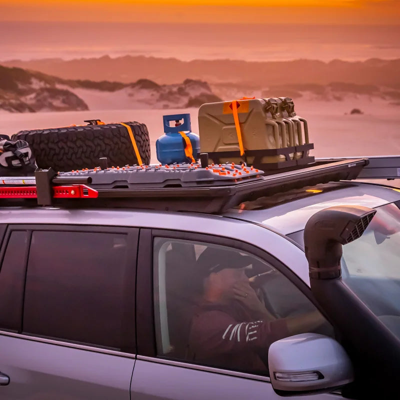 The BASE Rack takes accessories and cargo loading to a whole new level of simplicity, speed and personalisation. With a choice of sizes, accessories and attachments, you can truly Make It Your Own. By incorporating a dovetail extrusion around both the full perimeter and along each edge of the internal beams, the BASE Rack provides endless mounting and attachment options. Adding, removing and repositioning accessories and roof loads is quick and easy with the BASE Rack's dovetail system, making it easier to install and remove individual items without disturbing the whole load. Plus, unlike traditional roof rack channels, the BASE Rack dovetail extrusion won't collect dust and debris. Each BASE Rack accessory or fixture attaches to the rack with a simple clamp mount, including larger hardware such as Hi-Lift(TM) Jack mounts, rollers, recovery boards and even a BASE Rack custom light bar.