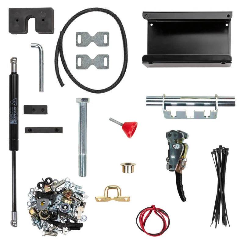Built to the same uncompromising standards as our Bumpers, all ARB tire carriers incorporate a heavy duty towing system and depending on the vehicle may accommodate one or two tires or a jerry can holder. There are many benefits associated with fitting a tire carrier to a vehicle. Many 4x4s have their spare tire positioned underneath the vehicle making it difficult to access and vulnerable to damage, particularly in harsh off road environments. Others have their spare tire mounted on the back door, which can place stress on the door hinges, resulting in rattles and compromised dust sealing as increased wear is put on the door assembly. Both of these mounting methods can also prove unsuitable if a larger tire size is sought. An ARB tire carrier addresses all of these issues, relocating the spare tire onto the bumper assembly via a swing out carrier. Operation of the swing out carriers could not be more simple. Slight pressure applied to a lever opens each carrier with a gas strut assisting this process. The strut holds the carrier in the open position, with engagement of a locking pin only being necessary if the vehicle is on an extreme side angle. The carrier can be closed with a simple slam shut, with the spring loaded locking pin automatically disengaging as soon as the weight is released.