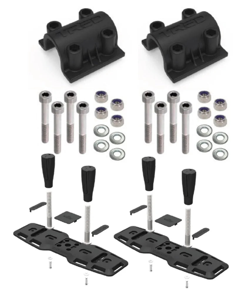 TRED has released two new mounting adapters, allowing for either a side-mount or flat-mount option when used with the TPMK mounting plate. The TRED Mount Adapters are made from glass reinforced nylon, a similar material to the famous ARB TRED PRO Recovery Boards but containing a higher concentration of glass to improve strength. This material provides a lighter-weight option and a more flexible solution for keeping your TRED Recovery Boards within easy reach and out of the way of cargo storage on your vehicles roof rack. The TRED Mount Adapter system also includes all stainless hardware for whatever mother nature can throw at it. The TRED Flat-Mount Adapter was specifically developed to be used in conjunction with the TRED Mount Baseplate (Part Number TPMK) for mounting TRED Recovery Boards to the 1-inch crossbar support tube under the mesh of your roof rack. If there is no mesh on the roof rack, additional bracing might be required to eliminate twisting, and the supplied hardware might need to be shortened for a neater finish.