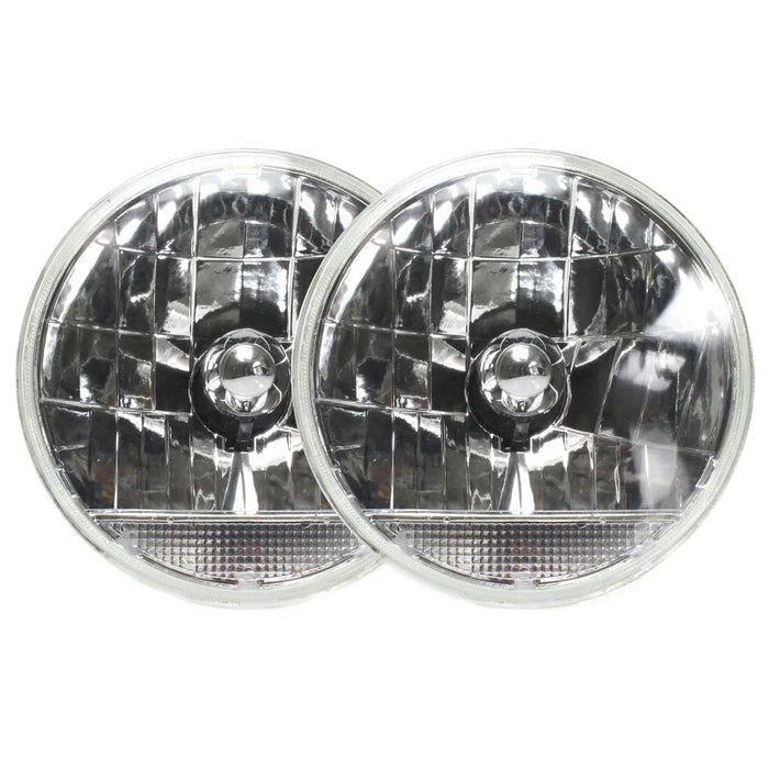 Headlight - Snake-Eye - 7 in OD - H4 Bulb - Clear Turn Signal - Glass / Steel - Universal - Pair