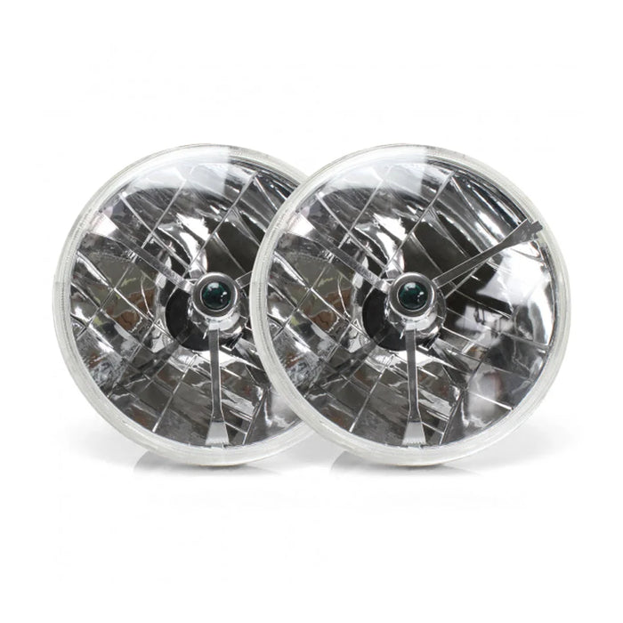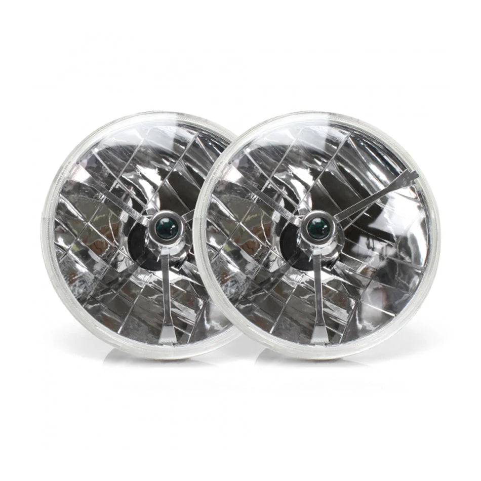 Headlight - Tri-Bar With Colored Dots - 7 in OD - H4 Bulb - Glass / Steel - Universal - Pair