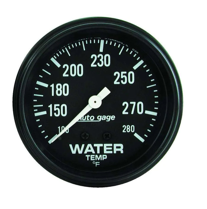 Water Temperature Gauge - Auto Gage - 100-280 Degree F - Mechanical - Analog - Full Sweep - 2-5/8 in Diameter - Black Face - Each
