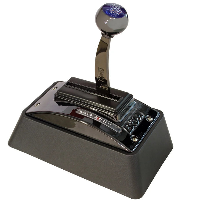 Description_MKT | The black QuickSilver features a black PVD coating. Features a reverse lockout that meets NHRA and IHRA safety regulations. The black chrome bezel, shift stick and black knob all feature a black finish that blends nicely with the console and the shift boot. The shifter includes a lighted gear position indicator in the bezel, a micro-switch for back-up lights and a neutral safety switch preventing accidental starts when in gear. The console shifter kit includes a 5-foot long performance shift cable, cable brackets, trans-shift levers, and all required hardware along with detailed installation instructions for an easy step-by-step install. Compatible with GM TH350, TH400, 700R4, 200R4, 4L60, 4L60E - 4L80E transmissions (w/o PRNDL switch), Ford C4, C5, C6 and Mopar A727 and A904 transmissions right out of the box. Bracket and Lever kits available separately for other 4-speed automatic transmissions. |