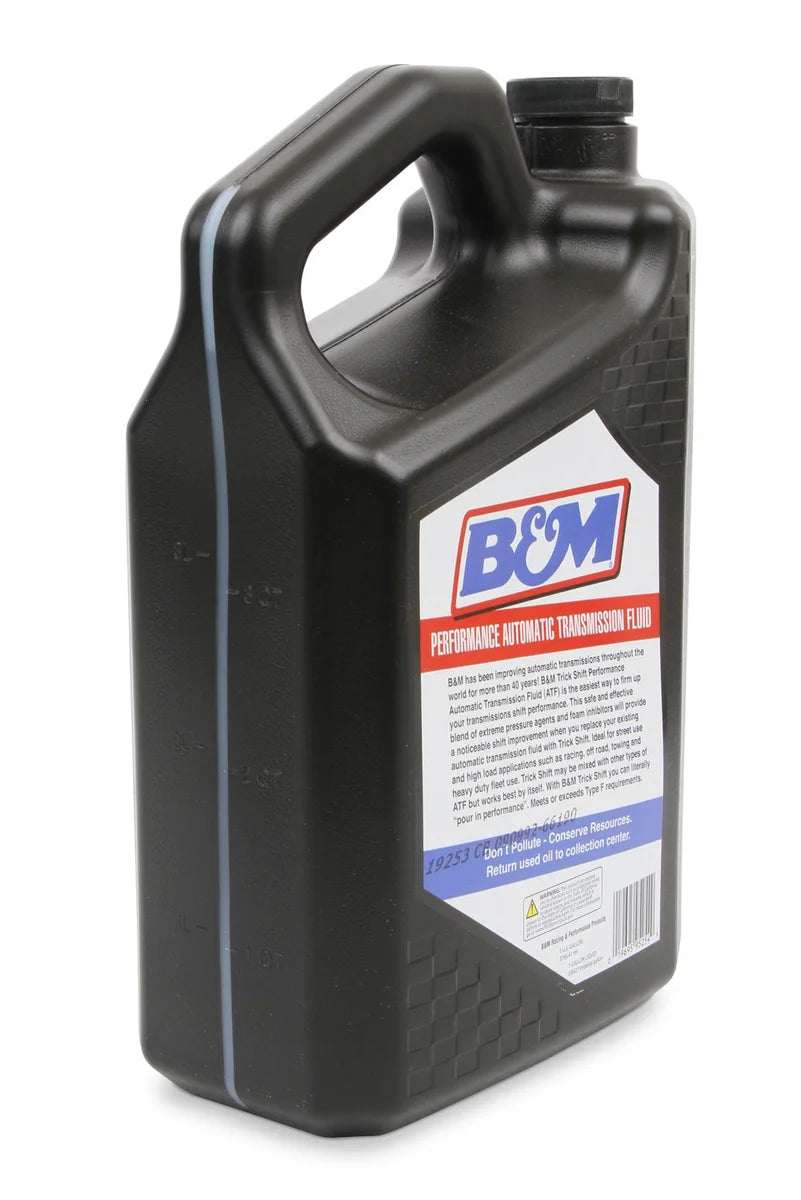 Description_MKT | Trick Shift was originally developed by B&M for racing applications. It's become so successful that it's the most popular high performance fluid on the street also! Not an additive, this is the best performance ATF available! A scientific blend of foam inhibitors, pressure agents and shift modifiers that will provide extended transmission life and drastically improve shift feel. Trick Shift is the easiest way to measurably improve the transmission performance of your vehicle. Trick Shift works with all automatic transmissions when a firmer shift is desired. Pour in Performance is not just a catchy phrase - it's reality! It can be mixed with stock-type transmission fluids, however, to attain maximum improvement you should use Trick Shift exclusively. Ideal for towing light trucks and RV applications as well as racing. Not recommended for electronic controlled transmissions. |
