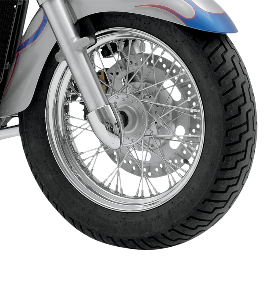 Adds style to your front end. Tapers front forks to a dynamic bullet point. Covers axles and exposed hardware. Very easy to install.