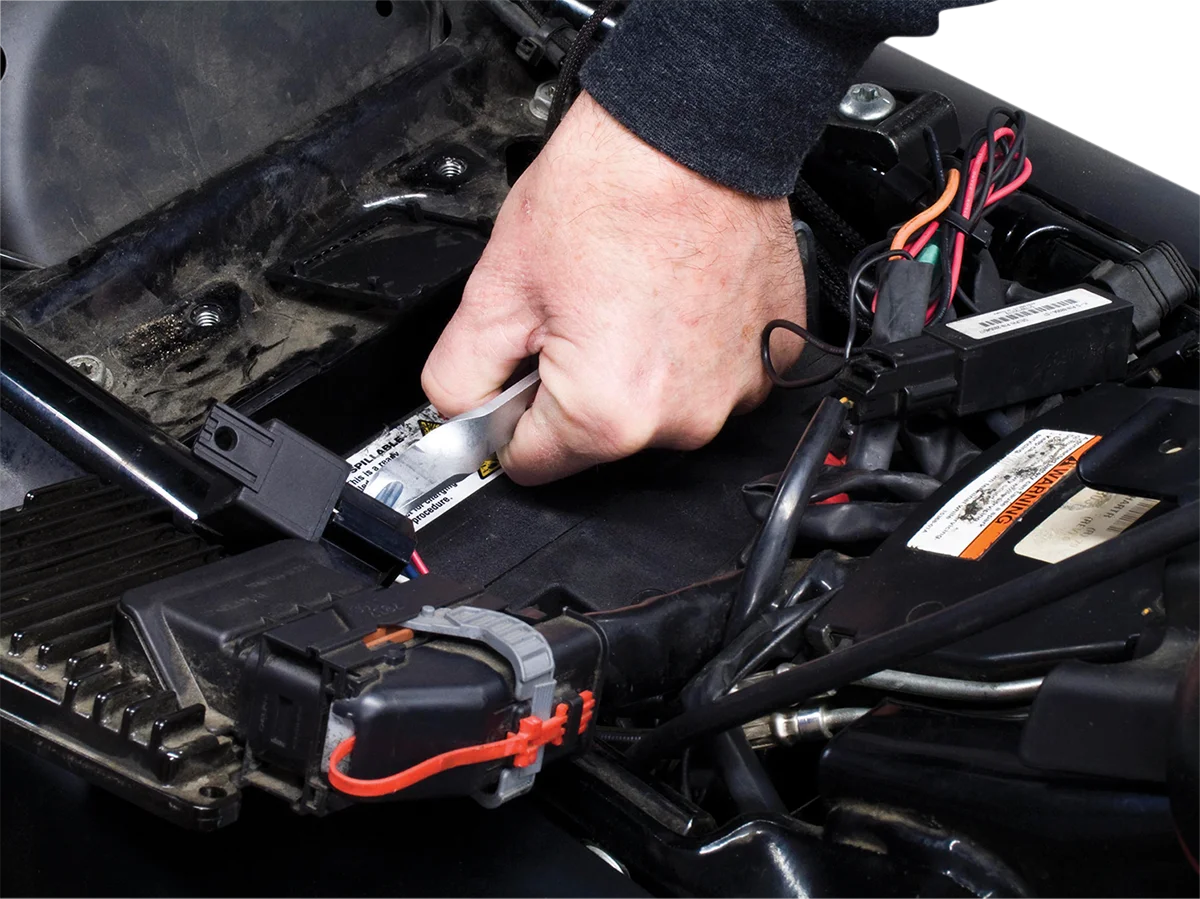 Modeled after the larger tools made for automotive batteries, but is properly sized for Harley-Davidson® models. Easily lifts batteries that have an extremely tight fit in the compartment. Made in the U.S.A..