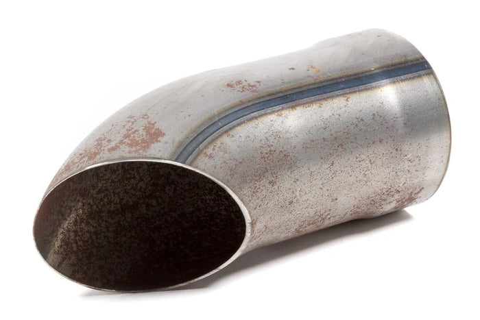 Exhaust Tip - Weld-On - 3.5 in Diameter - 6.5 in Long - Single Wall - Cut Edge - Angled Cut - Turndown Style - Steel - Natural - Each
