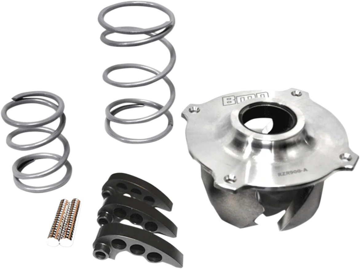 Provides increased acceleration and backshift. Easily adjustable for engine mods, larger tires, or added weight. Kit includes BMP Magnetic Adjustable Weights, Primary Spring, Helix, Secondary Spring, SS Washers.