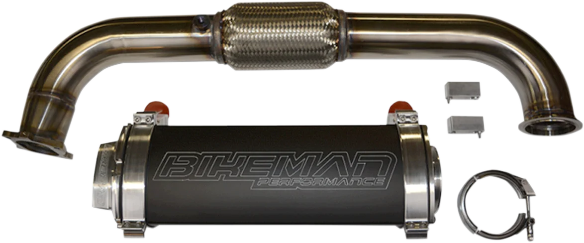 BMP stainless steel full exhaust - designed, built and assembled in the USA. Unlike most companies, BMP designed, developed, and built their own muffler from the ground up to offer a completely unique product. 6061 fully machined billet aluminum components. Stainless steel spiral formed louver core. Rigid v-band ensures a tight, leak proof fitting between the pipe and muffler. Stainless steel hardware for long-lasting aesthetics (even the black coated bolts are stainless steel). Comes with 90° turn-out (black finish). Big horsepower and torque gains at low to mid range power. Decreases turbo lag. Turbo runs cooler (lower EGT) leading to increased longevity of turbo and exhaust valves. Designed in BMP's state of the art UTV performance center. Compatible with sound-reducing "Whisper Biscuit". Compatible with spark arrestor.