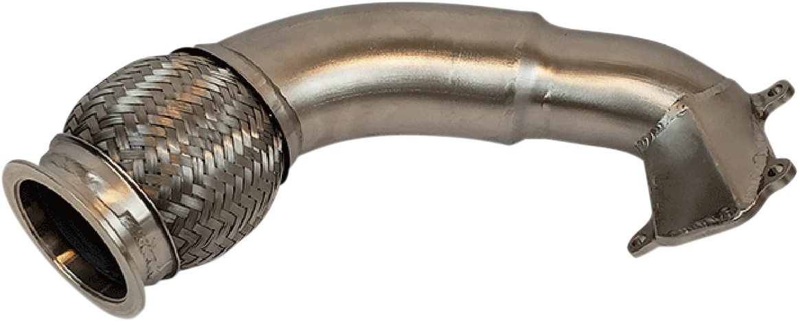 2-1/4" mandrel bent turbo outlet manifold. Gain horsepower on stock boost level and even more on sleds with boost increased. Non-divorced internal design. High-quality stainless steel. Includes both gaskets for the turbo and muffler. Made in the U.S.A..