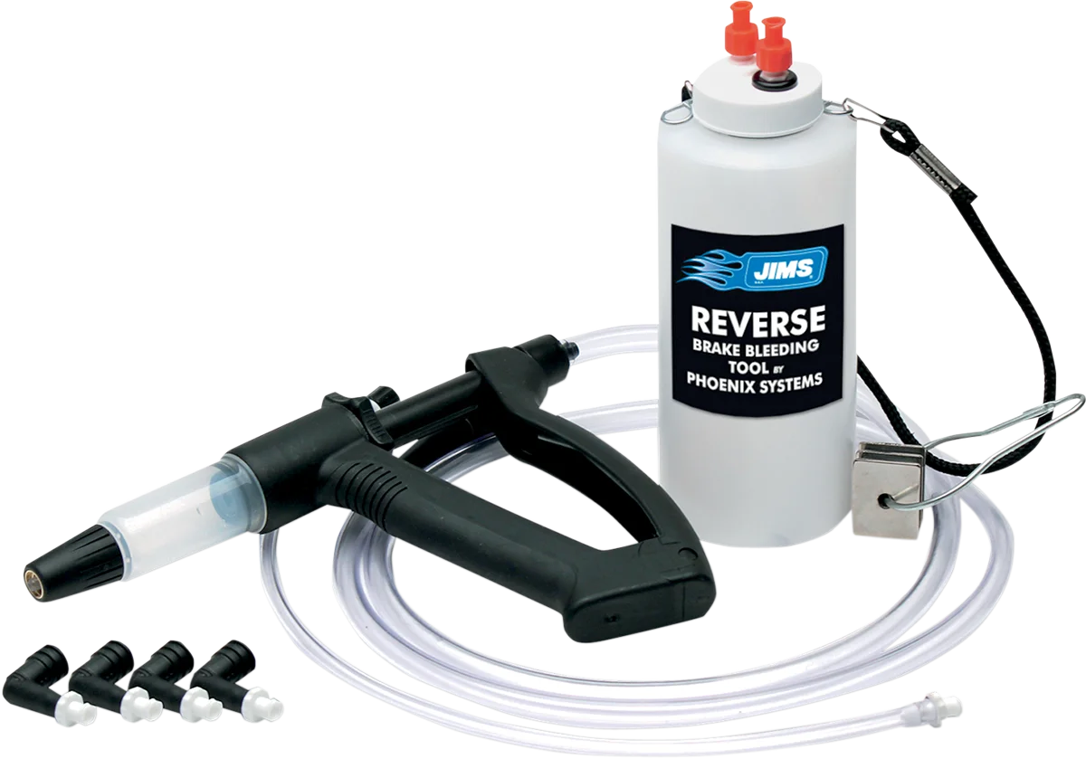 Innovative method allows for all air to be removed from brake system without having to pump the brake handle or pedal. Easy-to-use system pushes new fluid into the brake caliper bleeder up through the master cylinder. Works on both single- and dual-disc applications with or without ABS. Follows OEM specifications for actuating ABS systems for bleeding. Saves time and brake fluid. Made in the U.S.A..