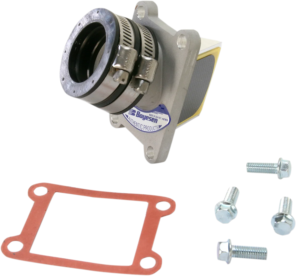 Maintain flow velocity through the valve and redirect intake charge for more even distribution to intake ports. Made of one-piece aluminum castings and bolts in easily; no modifications necessary. Provide quicker, sharper throttle response and more horsepower throughout rpm range. Specially-designed reed cage holds Boyesen's patented dual-stage reeds. Boyesen's hot RAD valve provides plenty of torque.