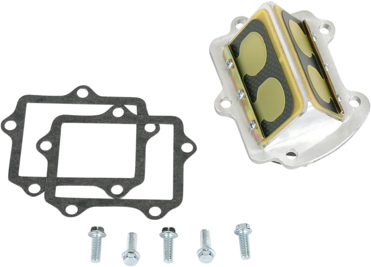 Maintain flow velocity through the valve and redirect intake charge for more even distribution to intake ports. Made of one-piece aluminum castings and bolts in easily; no modifications necessary. Provide quicker, sharper throttle response and more horsepower throughout rpm range. Specially-designed reed cage holds Boyesen's patented dual-stage reeds. Boyesen's hot RAD valve provides plenty of torque.
