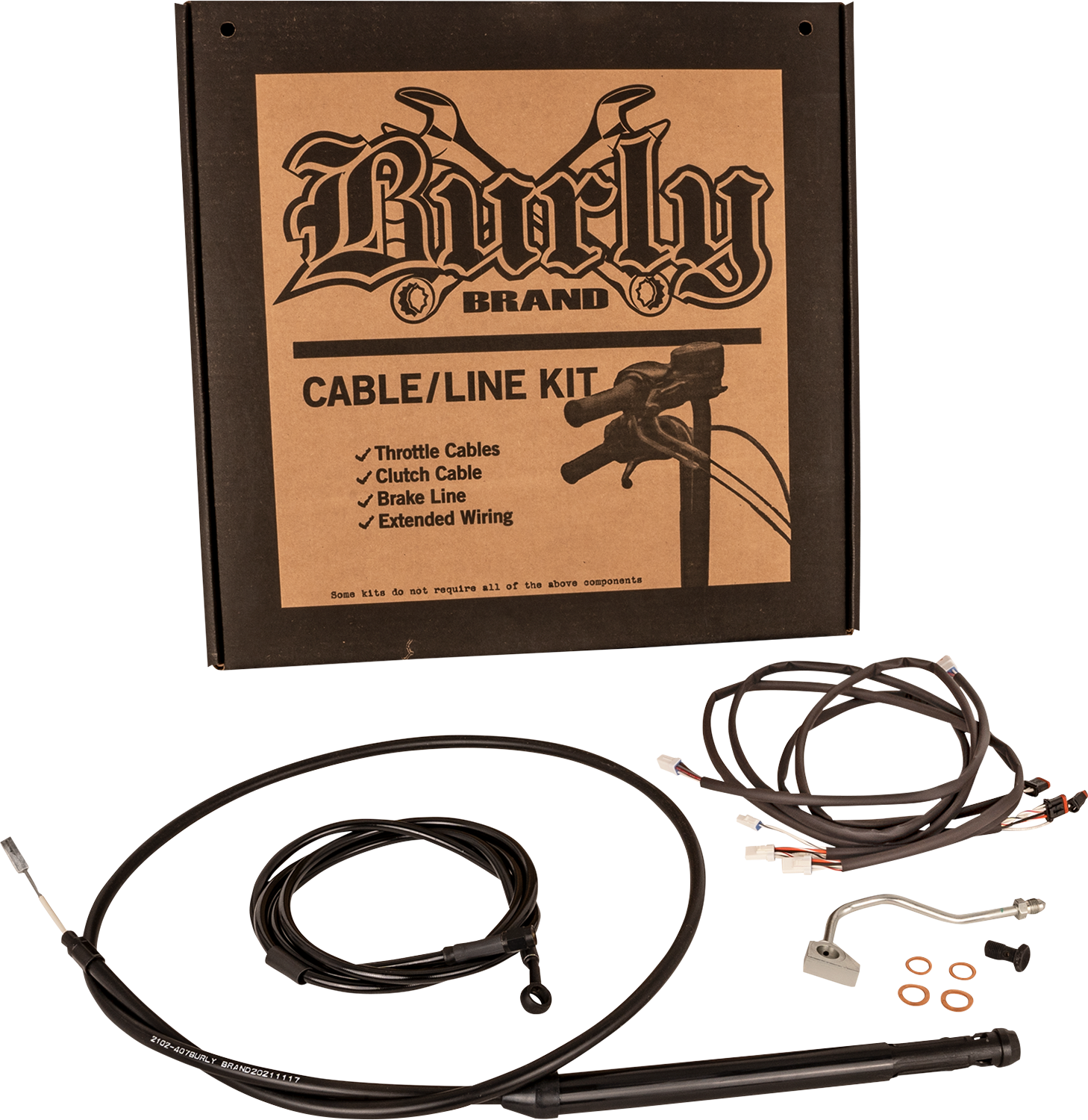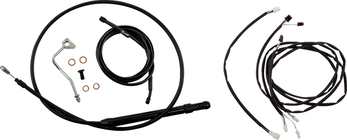 Includes everything you'll need to install your handlebars: clutch cable, brake line, extension kit for main harness, shrink tubing & extension kit for Throttle-By-Wire. Intended for use with standard 2" risers.. Some ABS models use stock brake line..