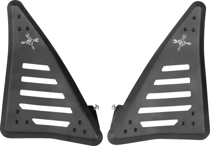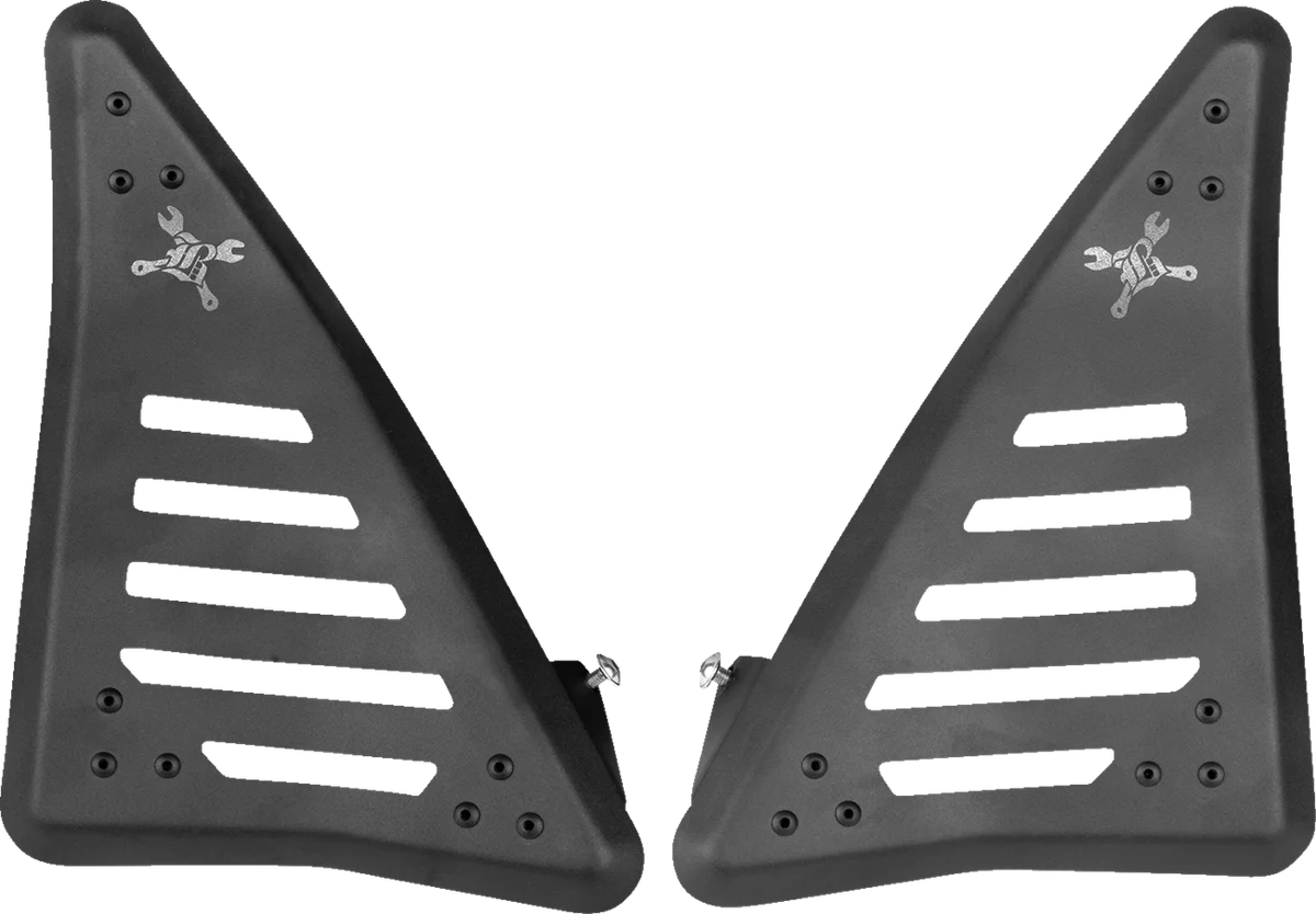 Features slash-cut windows and replaces with stock right and left side covers. Hardware included for simple bolt-on installation.