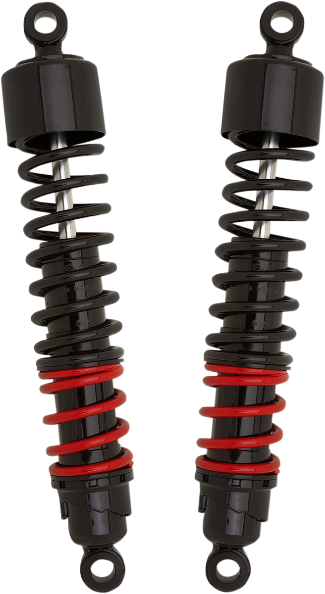 High-performance damper with dual springs. Main spring coil absorbs big hits and prevents bottoming, while the secondary coil smooths out minor road imperfections. Provide a plush ride that's not afraid to play rough. May require modification to exhaust brackets to open up clearance for belt. Before purchasing or installing shocks that are different than OEM length, confirm that wheel travel can be altered without causing clearance issues, such as swingarm/axle to exhaust contact and chain/belt guard or tire contact..