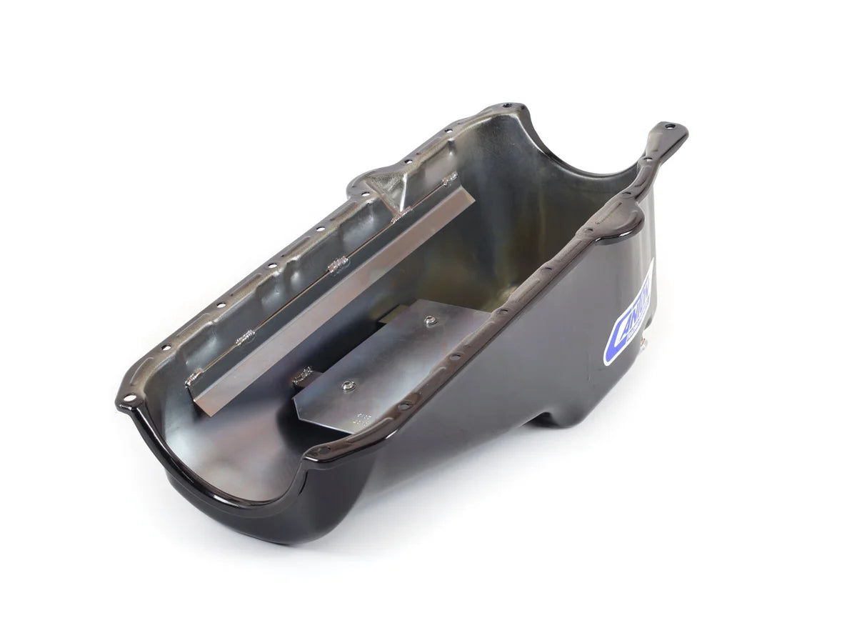 Description_MKT | This stock appearing oil pan is for ?86 and newer blocks with one piece seal. It is designed for applications that only have room for a stock oil pan, but require better control. Retains all stock oil pan dimensions and capacity. Will work with all starter flywheel combinations. Requires one of our pickups. |