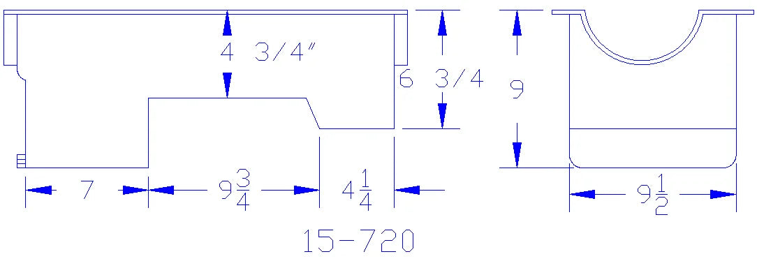 Description_MKT | Ford rear sump for Ford 351 Cleveland or Modified blocks in Fox Body Mustangs. It has a 9" Deep by 7" long sump giving it a 7 quart system capacity. Note: #15-720 will require special motor mounts and may require modification when used in 79-80 Mustangs. This pan requires our 15-721 pickup. |