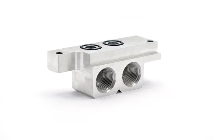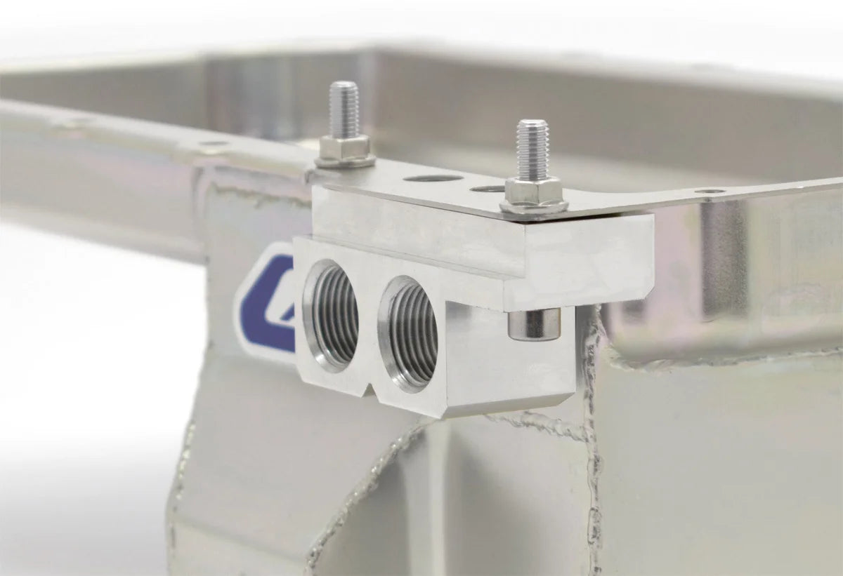 Description_MKT | This billet aluminum adapter is designed to install under the pan rail of our LS1 pans and provide inlet and outlet ports for installing lines to a remote oil filter. Adapter features o-ring seals between the pan and the adapter and 1-1/16" -12 AN oil inlet and outlet ports. |