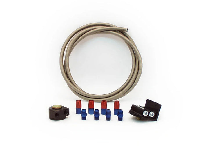 Feature 4 | Includes a 90 degree rotating billet aluminum block adapter, a billet aluminum remote filter mount, 8 feet of stainless steel braided hose, and all of the necessary fittings |