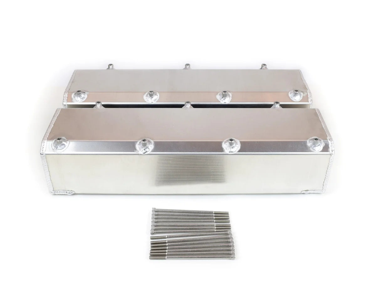 Description_MKT | This is a lightweight yet rigid BBF valve cover. This fabricated valve cover is designed to be light weight, yet strong enough to prevent warpage. It is constructed from .100" aluminum, with heavy wall mounting tubes and is welded on cylinder heads to insure proper fit. Fill bungs, AN fittings, or breather stacks can be installed on a special order basis. Stainless socket head mounting bolts included. |