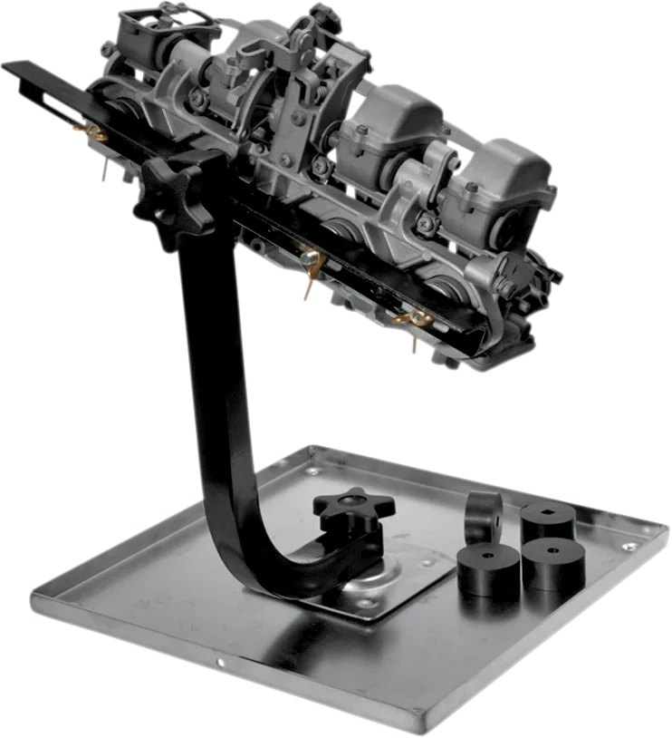 Conveniently positions carburetor at ideal height and allows 360° rotations for easy access. Includes expansion plugs to hold carbs with openings from 22 mm - 41 mm for unobstructed use. Can be bench mounted.