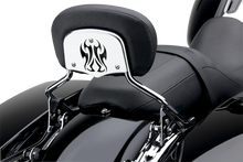 Add flair to a Cobra backrest. Engraved with the Cobra logo. Polished, then finished with show chrome. Fit Cobra round or square sissy bars. Made in the U.S.A..
