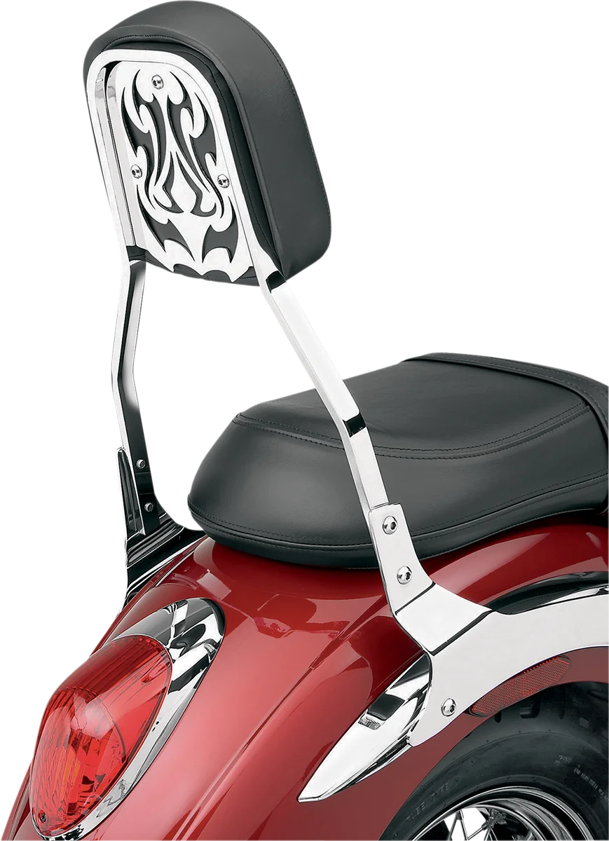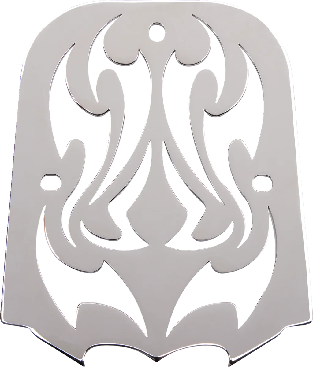 Add flair to a Cobra backrest. Engraved with the Cobra logo. Polished, then finished with show chrome. Fit Cobra round or square sissy bars. Made in the U.S.A..