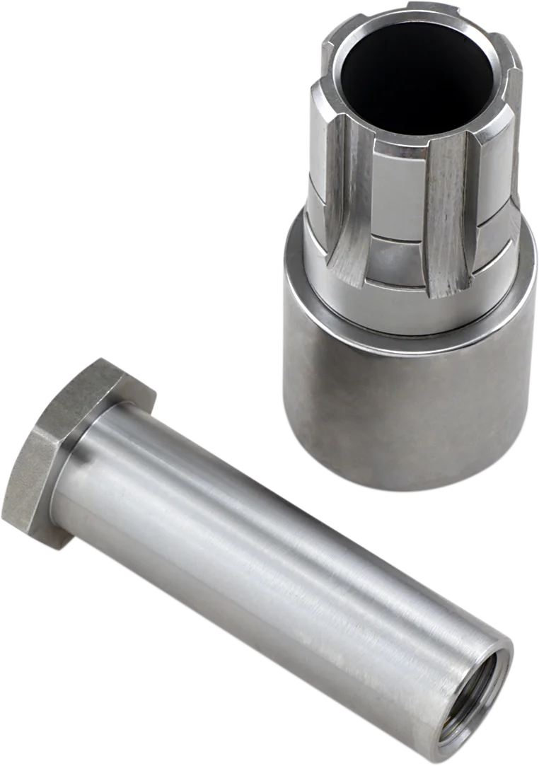 Hardened alloy steel extension has been precision ground. For use with OEM or most aftermarket compensating sprockets. Used when offsetting transmission in wide tire applications.