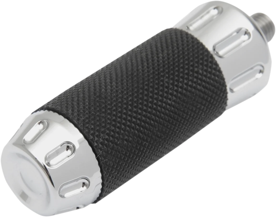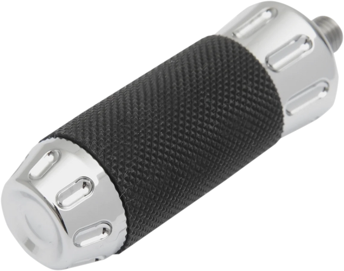 CNC precision-made from billet 6061 T-6 aluminum. Feature custom-tailored rubber grips for better performance and design. Footpegs have male mounts to fit most Harley applications. Brake and shift pegs are threaded and fit most stock brake and shifter levers.