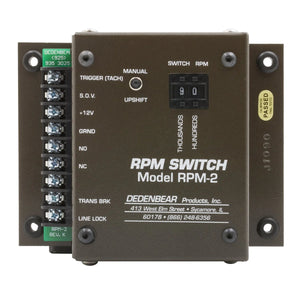 | Description_MKT | The Dedenbear Rpm2 Rpm Activated Switch Allows You To Trigger A Wide Variety Of Electrical Devices On Your Race Vehicle Based On A Pre-Selected, User-Defined Rpm Point With Incredible Repeatability. Push Button Controls Eliminate The Need For Separate Pills Or Modules And Built In Design Features Such As Manual Override, Time Delay, And Disable Circuit Make This Module Ideally Suited For Control Of An Air Or Electric Solenoid Control Shifter. Suitable For Use With 8 Cylinder Applications. Magneto Compatible With Purchase Signal Converter Such As Autometer #9118. |