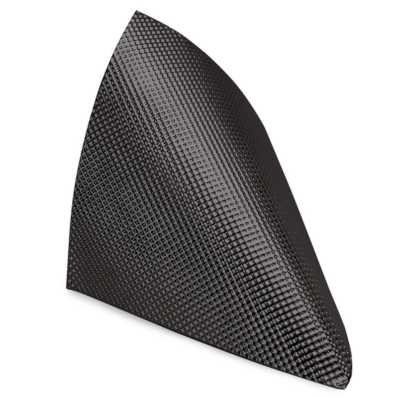 New Black Floor and Tunnel Shield solves the problem of blocking engine and exhaust heat while wanting a great, flexible, black finish. With a proprietary high temperature black coating, Black Floor and Tunnel Shield controls heat from getting into interiors and protects components from damage. Aggressive adhesive backing makes installation easy. Flexible - easily shapes to firewalls, trans tunnels, floors, and more. Constructed with an embossed 10 mil aluminum face bonded to 1/8 in. composite glass-fiber core and backed with a high temp super strong pressure sensitive backing, Floor and Tunnel Shield II withstands up to 1750F. The adhesive side holds past 450F. Proprietary high temperature black coating Wind and water will not affect adhesive Minimum clearance required, only 3/16 in. thick Easily shape, trim, peel and stick Aggressive self-adhesive backing DO NOT apply directly to exhaust components. Bending in a metal break or making sharp bends may crack the black coating. This will not change the performance of the product.