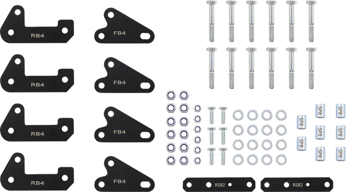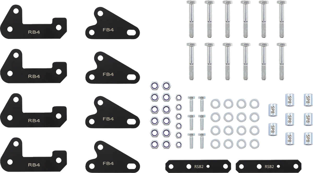 Lifts all four corners of the vehicle for increased ground clearance and stability. Allows for mounting larger tires. Includes all necessary hardware and instructions.