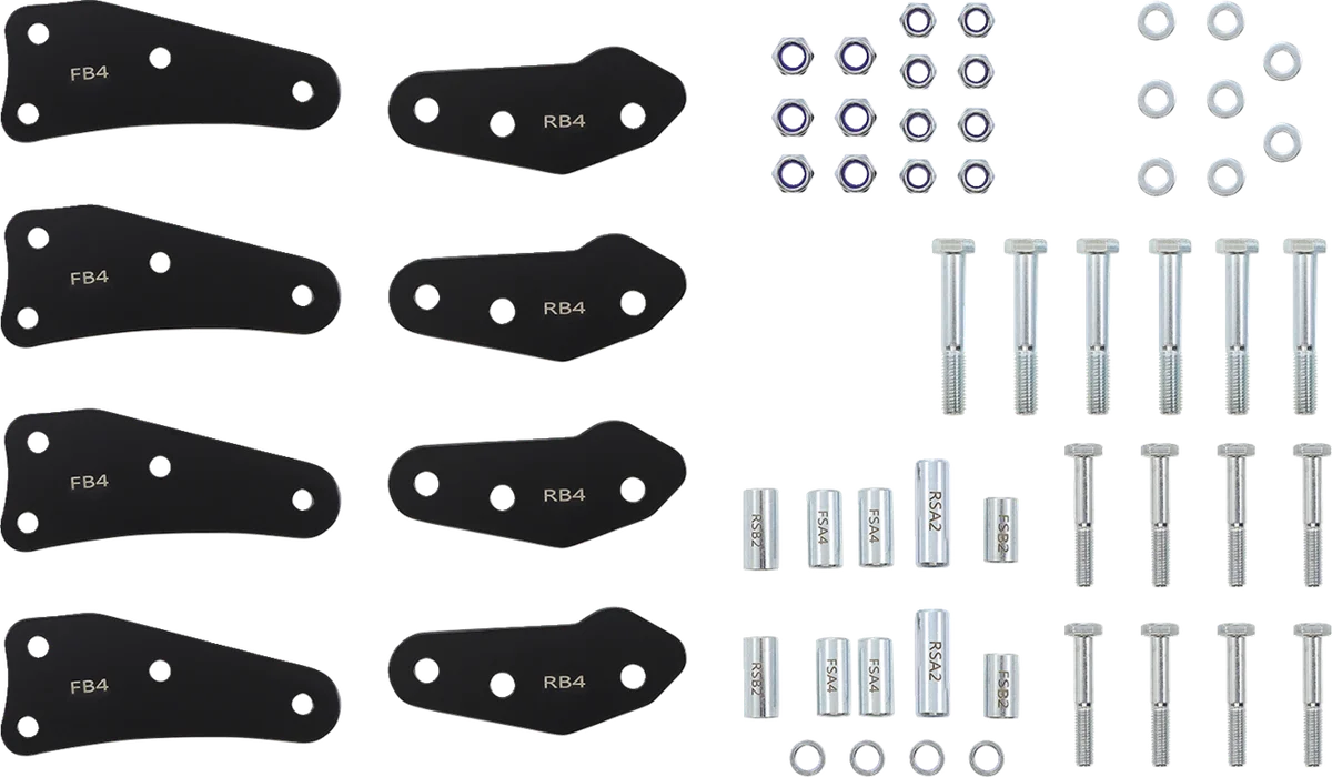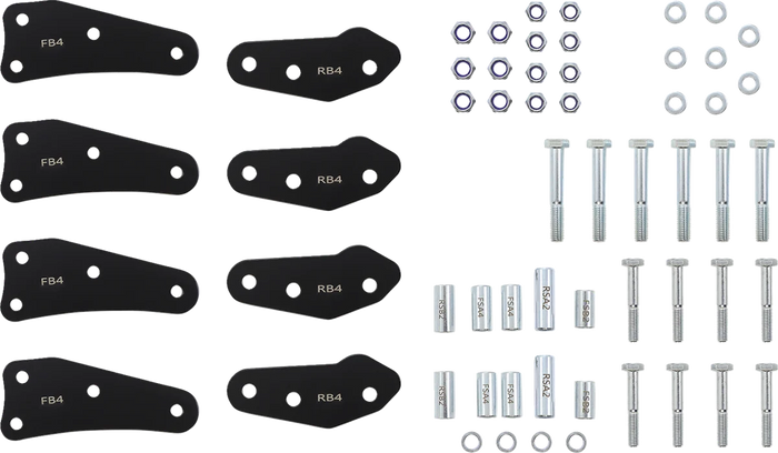 Lifts all four corners of the vehicle for increased ground clearance and stability. Allows for mounting larger tires. Includes all necessary hardware and instructions.