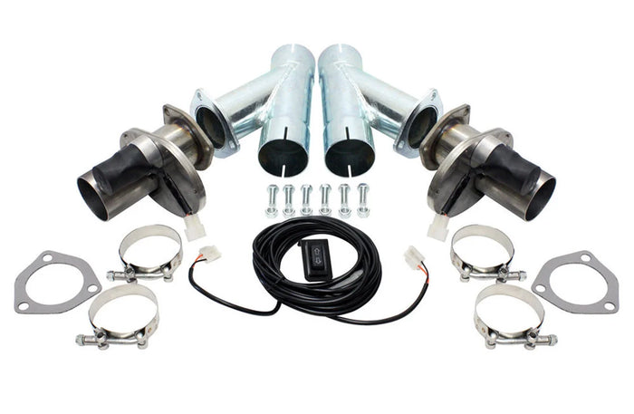 Exhaust Cut-Out - Electric - Clamp-On - Dual - 2.5 in Pipe Diameter - Hardware / Wire Harness Included - Stainless - Natural - Kit