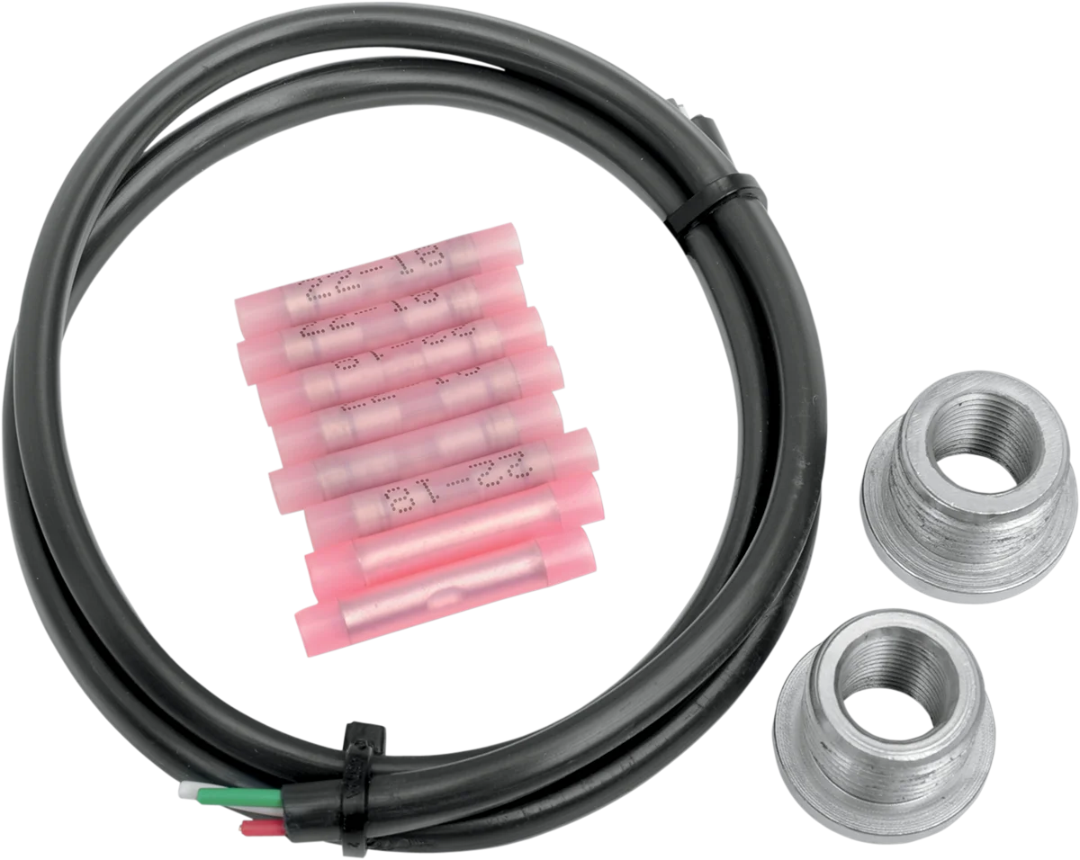 Reduces 18 mm exhaust bungs to 12 mm. Includes extension wire to allow the front sensor to reach the new installation location. Kit includes two adapters, extension wire, wire connectors and instructions.