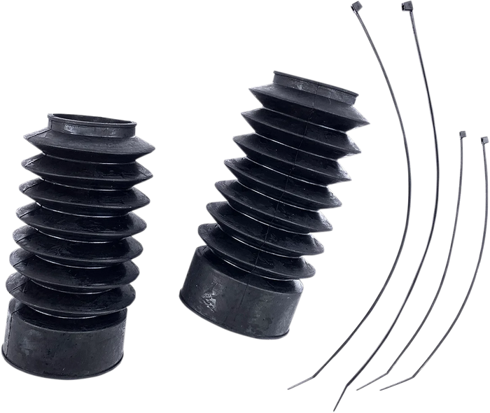 High quality black rubber construction. Include zip ties for easy installation. Removal of existing fork covers required for installation.
