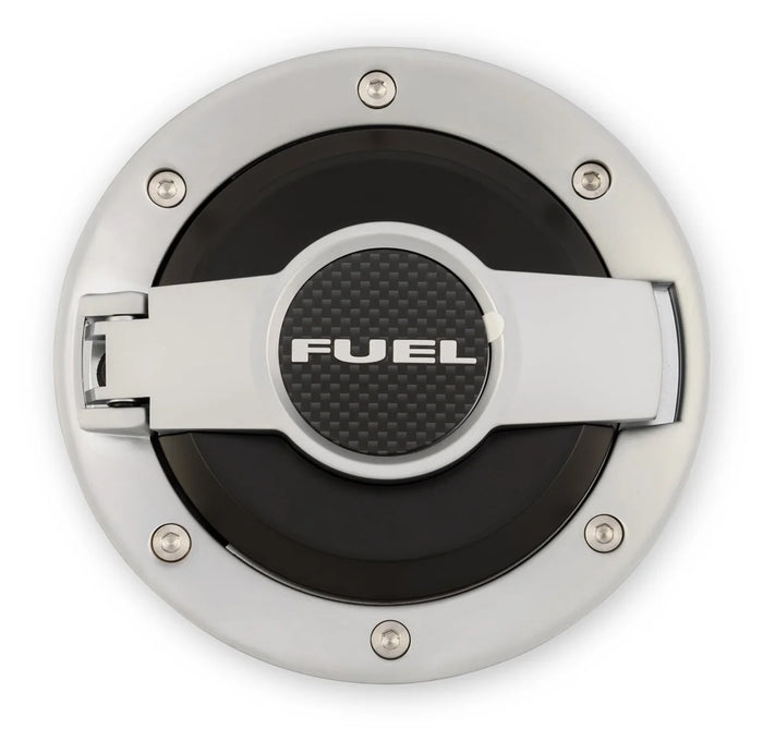 | Description_MKT | Made from billet aluminum and die-cast with stainless faux fasteners. Features a plunger for positive opening and closing. Satin finish on the outer ring, black finish on the inner ring featuring a printed carbon fiber emblem embossed with "Fuel". Includes plastic inner housing and fuel fill system. |
