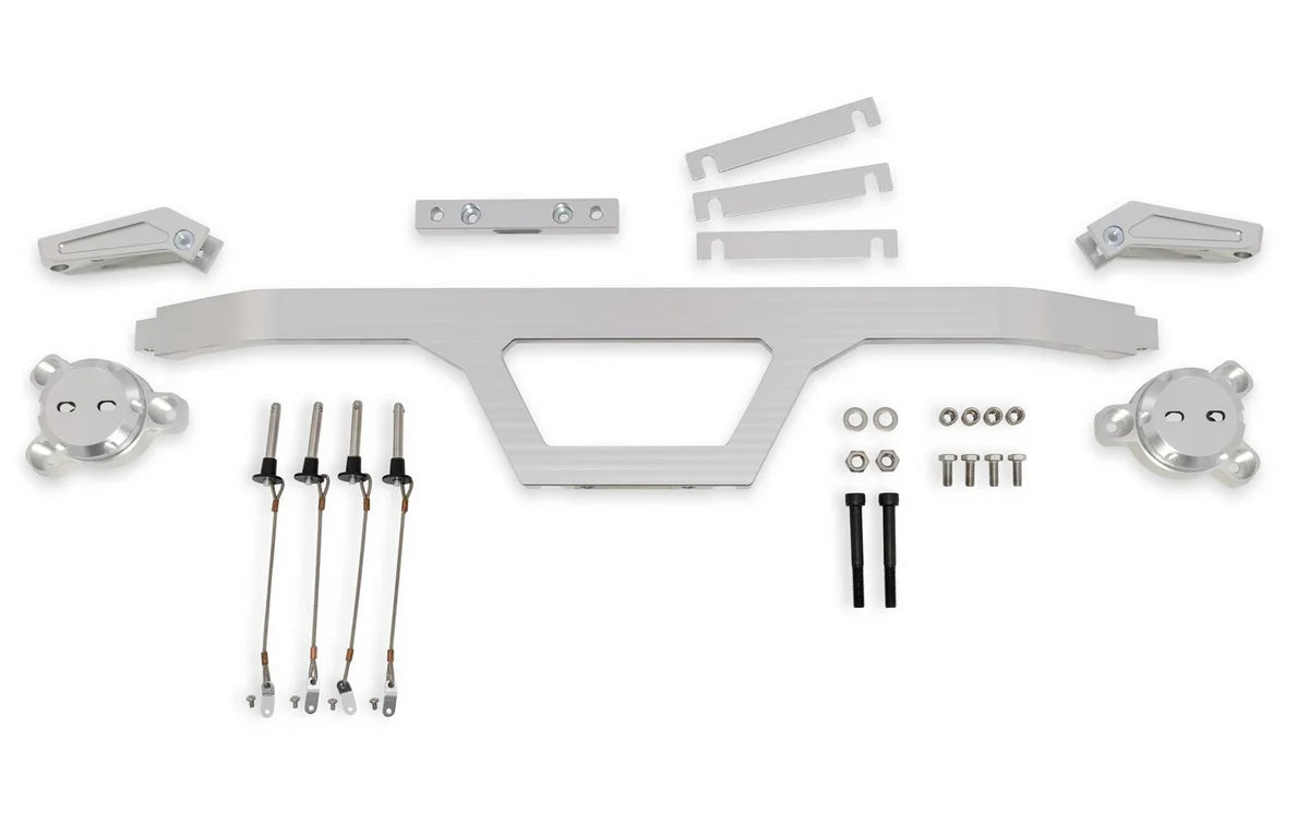 | Description_MKT | Improve your suspension and stiffen your chassis with this strut tower brace for your Mopar. This brace reduces flex during high G-load driving for better handling and a smoother, more enjoyable ride. Precision CNC machined billet aluminum construction with military spec quick release pins designed to fit the exact contours of your muscle machine while providing long-lasting durability for the road ahead. This easy bolt-on install can be done right in your own garage. Installation on 5.7L requires modification or removal of the engine cover. Does not fit V6 applications. |